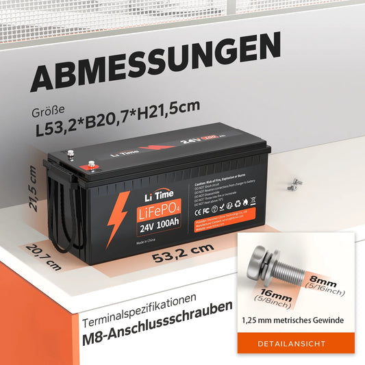 LiTime 24V 100Ah Lithium LiFePO4 Batterie